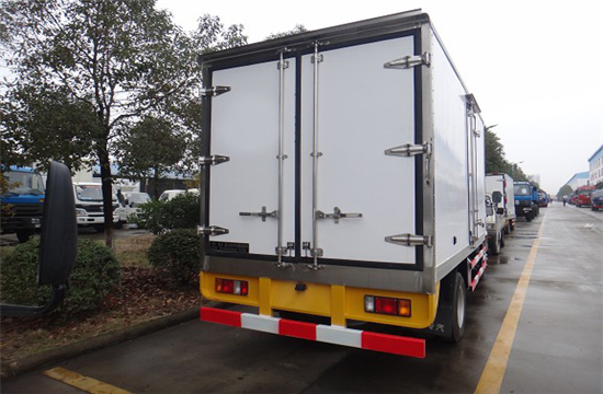 | 整车说明: | 1、发动机净功率为87kW;2、该冷藏车货厢顶部封闭,不可开启;3、可随底盘选装窄前保险杠;4、该车可选装单侧开门,选装侧开门时整车宽度为1975mm,不选装侧开门时整车宽度为1915mm;5、厢体地板可选装T型材,选装T型材时货厢内高为1740mm,不选装T型材时货厢内高为1775;6、侧防护材料:钢板 Q235,连接方式:用螺栓连接在车厢横梁上;后防护材料:钢板Q235,板厚3.0mm,连接方式:后防护支架以螺栓连接在车架纵梁尾端,后防护断面尺寸:105×(45~140)(mm),离地高度:490mm。 | ||